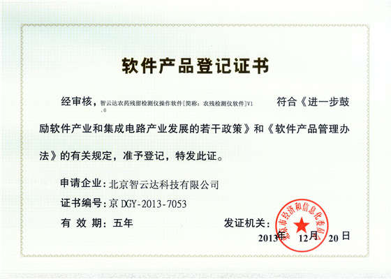 軟件產品登記證書——農藥殘留檢測儀操作軟件
