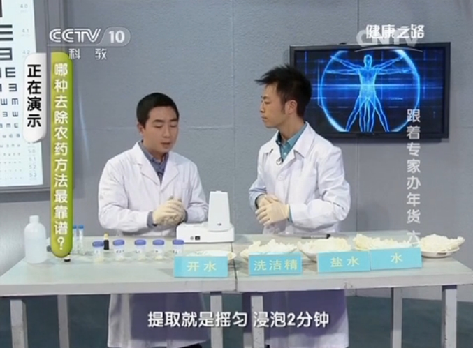 農(nóng)藥殘留問題是食品安全問題的重災(zāi)區(qū),老百姓都不希望將農(nóng)藥吃進(jìn)肚子里,怎么清洗最有效,專家通過實(shí)驗(yàn)告訴你。技術(shù)工程師劉誼逸分別提取用清水、鹽水、洗潔精、開水清洗過的蔬菜樣品,加入試劑制成溶液,放置入由北京智云達(dá)自主研發(fā)生產(chǎn)的