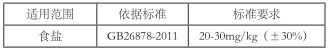 表 1 食鹽中碘含量的國家標準(以碘元素計)