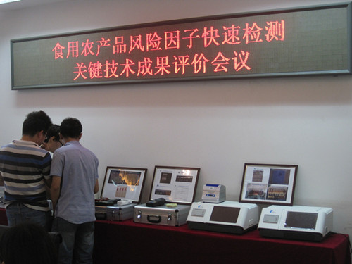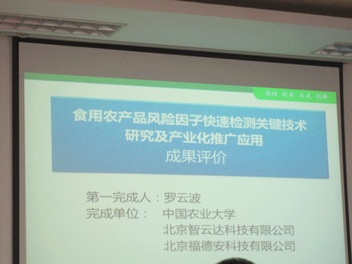 2014年8月31日上午,在中國農業大學食品學院二樓會議如期成功舉辦了“食用農產品風險因子快速檢測關鍵技術成果評價會”。該會議由農業部中國農學會組織,會議評審專家組由中國工程院孫寶國院士擔任組長,由天津科技大學校長王碩擔任副組長,另有農科院加工所等科研院所及高校的專家參加。