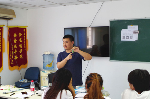 技術人員帶著學員動手檢測蔬菜中的農(nóng)殘