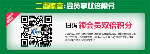 凡在智云達店鋪內的消費金額滿498或滿2筆訂單均可領取店鋪VIP會員卡,購物享優惠,增加會員歸屬感!