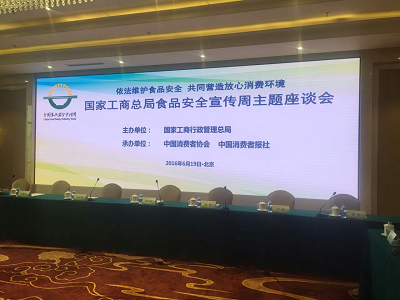 此次國家工商總局食品安全宣傳周主題座談會于2016年6月19日在中國職工之家拉開帷幕,出席會議的領導有國家工商總局副局長馬正其、國家衛生計生委食品司調研員史根生、國家質檢總局產品質量監督司處長彭軍等。