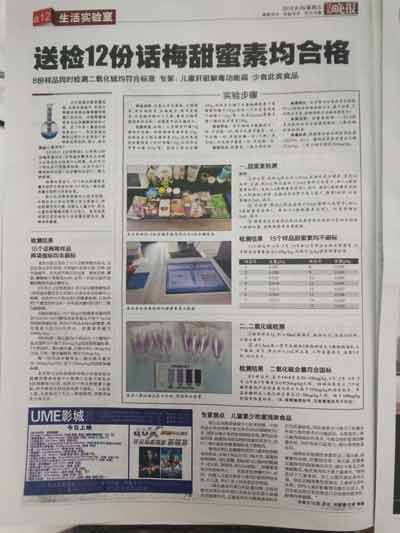 2016年8月25日12:00,北京智云達(dá)科技股份有限公司(以下簡(jiǎn)稱“北京智云達(dá)”)與法制晚報(bào)在樂(lè)嗨直播話梅中甜蜜素和二氧化硫的檢測(cè)。