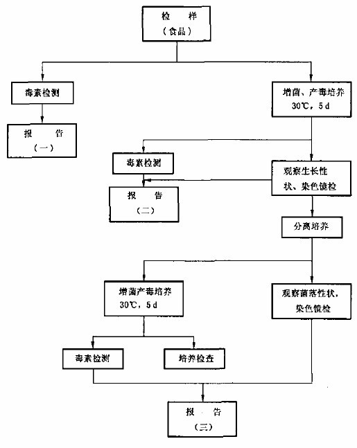 雖然肉毒桿菌沒有在常規檢驗范圍內,但是我國也有對肉毒桿菌及肉毒桿菌毒素的檢驗標準GB/T 4789.12-2003,食品衛生微生物學檢驗肉毒梭菌及肉毒梭菌毒素檢驗。檢驗原理是將受檢食品進行微生物培養,然后進行培養檢查及毒素檢測。檢測程序如下: