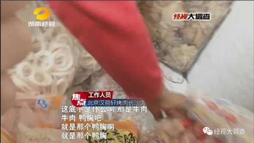 隨后,這些冰凍鴨胸肉又被偽造成牛肉,送上了餐桌,漢麗軒烤肉店的工作人員自己都聲稱不會吃。