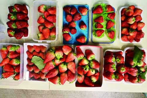 樣品來源:東四環附近的小攤、街邊攤7份,海淀附近的小攤4份,包括紅顏、豐香、甜查理幾個品種。