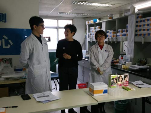 北京智云達技術(shù)工程師楊老師和王老師首先對樣品取樣,再通過使用北京智云達自主研發(fā)生產(chǎn)的快速檢測產(chǎn)品:化妝品苯二胺類快篩試劑盒,對樣品溶液進行檢測。