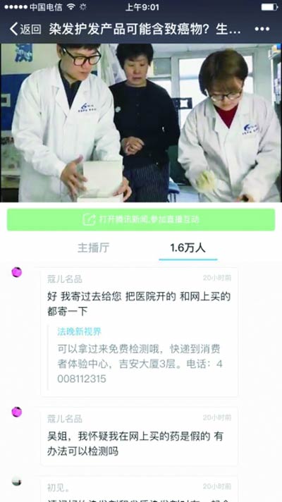 本文關(guān)鍵詞:北京智云達 法制晚報 騰訊直播 染發(fā)品苯二胺