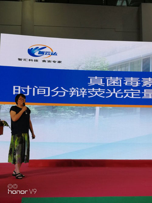 在糧油產(chǎn)品及設備技術館的大廳,同期舉辦了由福建省糧食局主辦、福建省糧食行業(yè)協(xié)會協(xié)辦的“第十四屆糧食產(chǎn)銷協(xié)作福建洽談會—糧油科技和設備技術項目推薦會”。智云達的王文珺博士在推薦會上介紹了我司自主研發(fā)的真菌毒素時間分辯熒光定量檢測系統(tǒng)。我司的真菌毒素時間分辯熒光定量檢測系統(tǒng)今年三月通過了國糧局的專家驗證,并列入了國糧局推薦產(chǎn)品目錄。