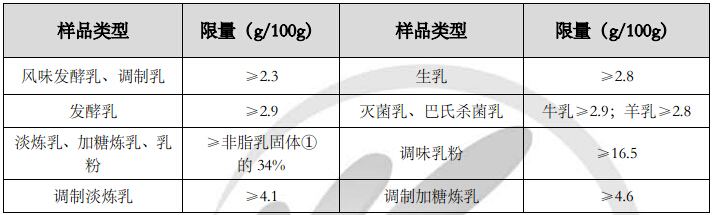 附表1  乳和乳制品中蛋白質含量指標