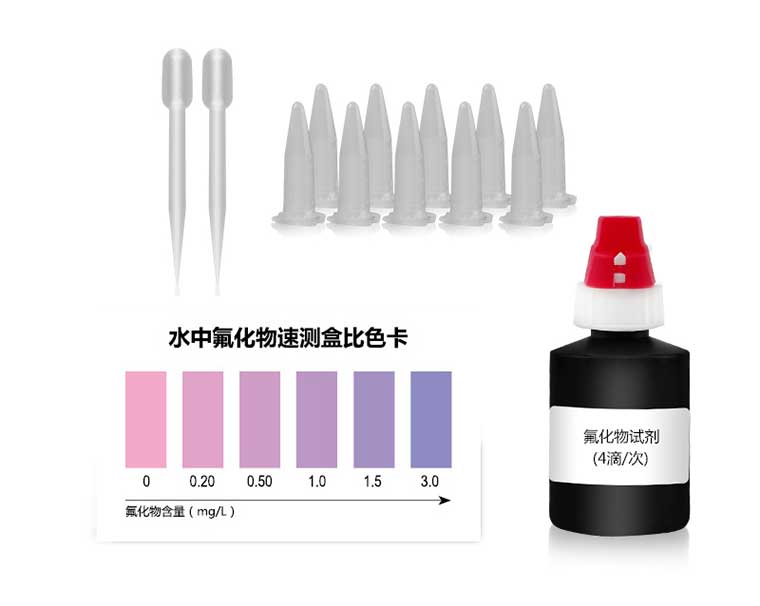 水中氟化物與檢測試劑反應生成藍色物質,含量越高溶液越偏藍色。