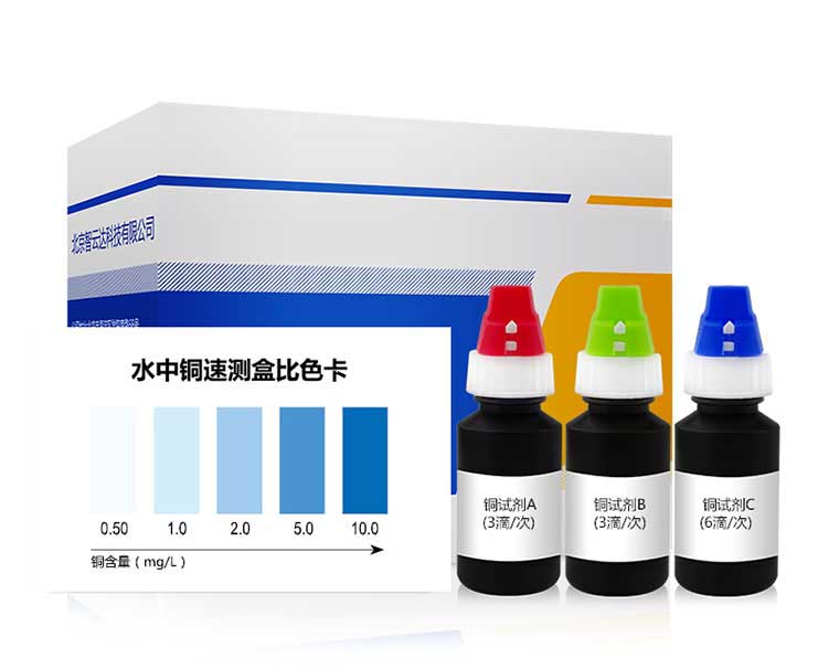 水中銅與檢測試劑反應生成藍色化合物,含量越高藍色越深。