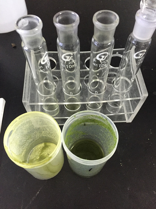 首先我們稱取綠茶粉末0.5g到提取瓶中,加入5ml丙酮,靜置10min;