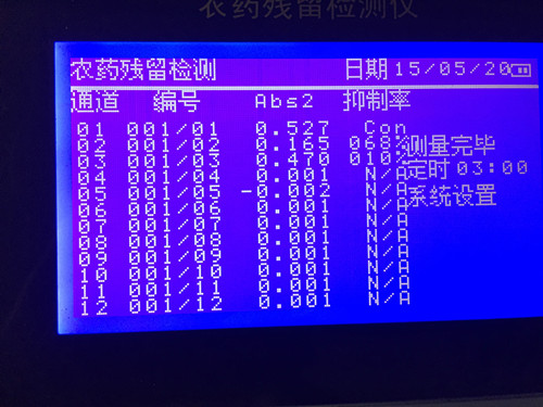 靜置時(shí)間結(jié)束后,立馬加入20ul底物并迅速轉(zhuǎn)移到農(nóng)殘檢測(cè)儀中進(jìn)行檢測(cè),通過3min檢測(cè)我們知道2號(hào)茶葉的酶抑制率超過50%,視為農(nóng)殘超標(biāo)。