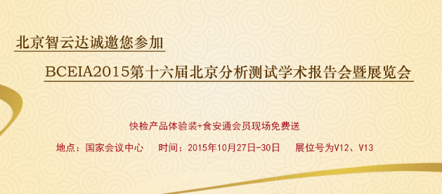 第十六屆北京分析測試學(xué)術(shù)報告會暨展覽會(BCEIA 2015)于2015年10月27日-30日在國家會議中心如期舉行。北京智云達(dá)科技有限公司受邀參展,展位號為:V12、V13,智云達(dá)誠邀您蒞臨參展。