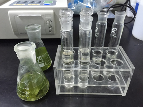 空白管:取4 mL樣品液于10 mL比色管中,加入A溶液0.4 mL,用蒸餾水稀釋至10 mL刻度線,搖勻。