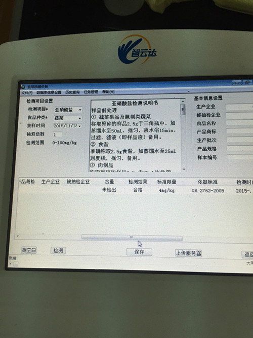 結(jié)果顯示亞硝酸鹽含量未超標,符合國家標準。