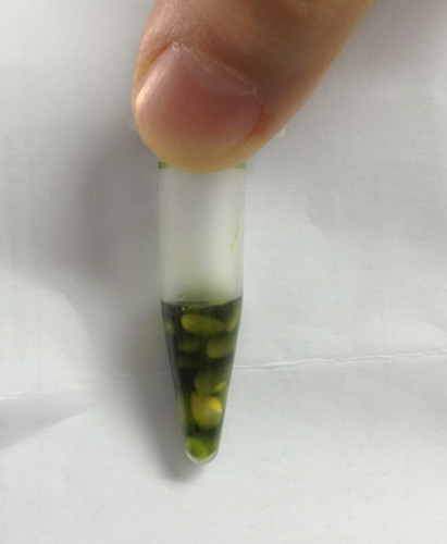 搖晃幾下,30秒內觀察顏色變化,如果溶液呈翠綠、淺綠色,則為新米,黃色、橙色、橙紅色為陳米。