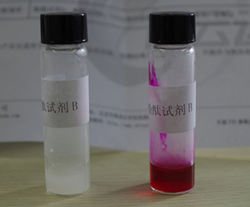 用0.5 mL塑料吸管吸取上層樣品處理液,加3~5滴于試劑B中,蓋上蓋子后搖勻,馬上觀察溶液顏色。
