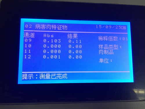 結(jié)果顯示樣品中POD活性值低于正常豬肉,疑似病害肉。快速檢測只能作為初篩,建議送到第三方檢測機(jī)構(gòu)進(jìn)行定量檢測。