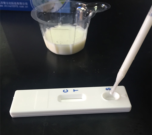 用干燥、潔凈的比色管盛放奶粉,用純凈水1:10稀釋(1份奶粉+10份純凈水),溶解后用于檢測。
