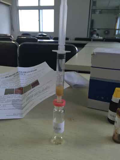 取1片樣品,壓碎成粉末。打開試劑瓶A的瓶蓋,將處理后的樣品倒入其中,擰緊瓶蓋,大力振搖約30秒,靜置30秒,待藥渣沉淀。